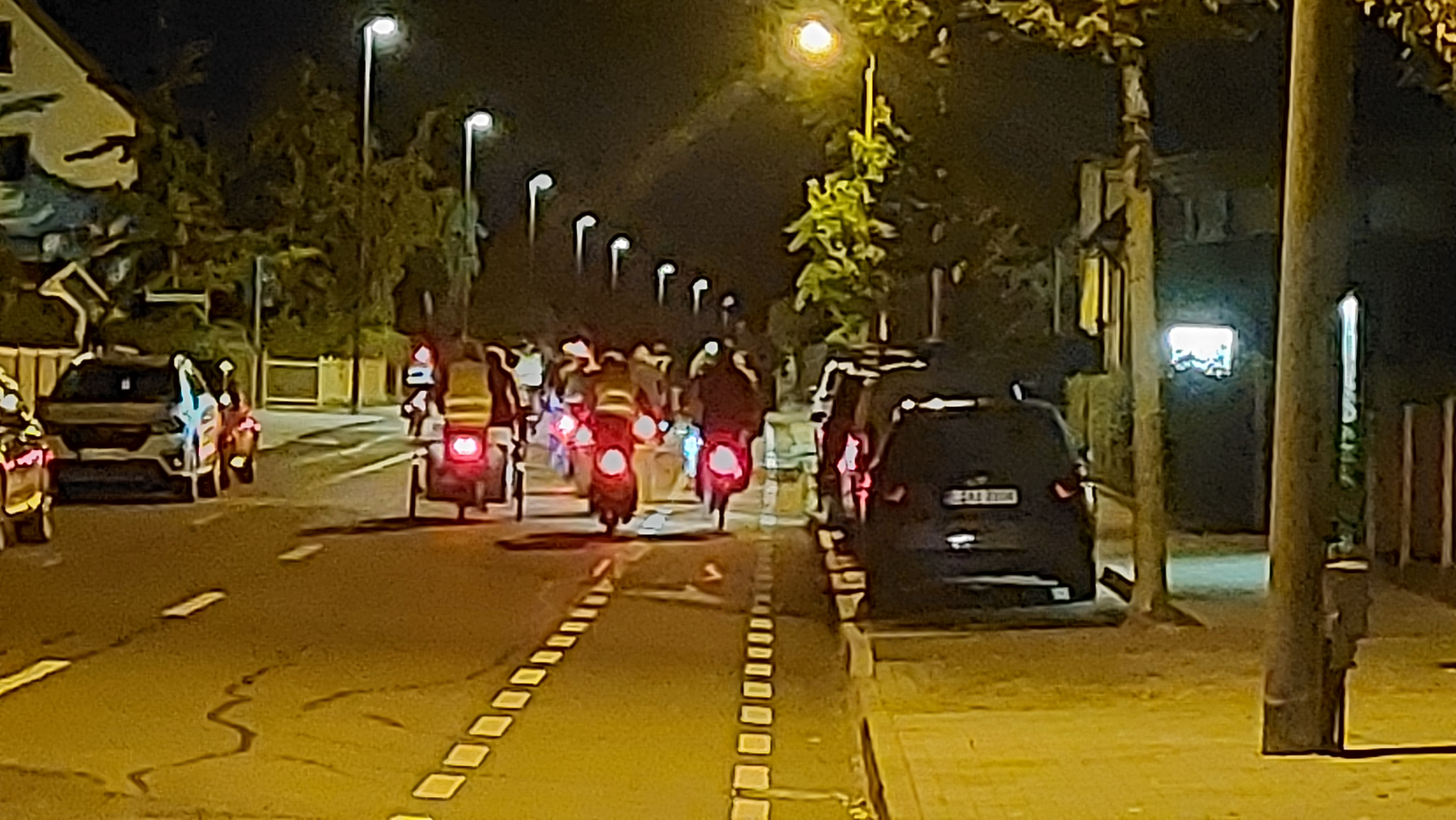 Radfahren und Kultur - eine sehr schöne Kombination. Und wenn dann noch das Wetter mitspielt, verspricht es einen wundervollen Abend. Etwa 34 Radfahrende hatten sich am Freitagabend auf dem Tauchaer Markt getroffen, um das Radwanderkino zu erleben. Michael Behrninger von LeipzigGrün und Mitstreiter*innen vom ADFC hatten das Event organisiert. Michael kündigte an, welche Tour wir fahren würden und an welchen Stellen Filme gezeigt werden. Ständige Begleiter waren Marcus und Jacob, Musiker von der Hochschule für Musik und Theater Leipzig. Sie stimmten auf den Abend ein und unterhielten uns an den Haltepunkten. Aber auch während der Fahrt war stimmungsvolle Musik aus der Konserve zu hören. Ordner vom ADFC sicherten die Aktion ab.