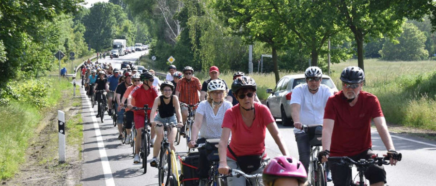 Bei blendendem Wetter hatten sich rund 100 Rad-Freunde am Bahnhof Taucha versammelt und sich dann unter Polizeischutz auf die insgesamt 16 km lange Strecke begeben. Alle hatten Spaß, zumal drei „Musikwagen“ mitfuhren – für jeden Geschmack war etwas dabei. In Jesewitz teilte sich die Gruppe dann.
